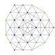 These 71 polytopes are each shown in these 6 symmetry planes, with vertices and edges drawn, and vertices colored by the number of overlapping vertices in each projective position.