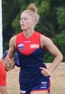 ![]() Ashleigh Woodland (pictured with Melbourne in 2019) is the most recent recipient of the AFL Women's leading goalkicker award, winning in 2022 while playing for Adelaide. | |