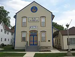 The Ancient Free and Accepted Masons Lodge 687 (AF and AM), also known as the Independent Order of Odd Fellows J.R. Scruggs Lodge 372, is a building constructed in 1876 as a Masonic Hall. It is located in downtown Orangeville, Illinois, a small village in Stephenson County. The building, originally built by the local Masonic Lodge, was bought by the locally more numerous Independent Order of Oddfellows fraternal organization in 1893. The building has served all of Orangeville's fraternal organizations for more than 125 years, from the time it was built. The two-story, front gabled building has Italianate architecture elements. It had a rear wing added to it in 1903. By 2003, the first floor has been returned to use as a community center, holding dinner theatre and other community functions, much as the building had originally served the community until first floor space was rented out for commercial use in the late 19th century. The building was listed on the U.S. National Register of Historic Places in 2003. The building is the home of the Mighty Richmond Players Dinner Theatre (MRPDT) dinner theatre which seats 54 persons and has scheduled four different productions for the 2010 season. A $150,000 renovation of the building was recently completed.[2][3] The building was listed on the National Register of Historic Places as AF and AM Lodge 687, Orangeville in 2003.