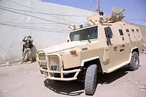 Dzik (Polish: Wild Boar) is a 4.5-ton Polish-made multi-purpose infantry mobility vehicle. Produced by the AMZ works in Kutno, it is designed for serving both the patrol and intervention roles, as well as an armoured personnel carrier for use by various peace-keeping and policing forces. Its armour provides defence against 7.62 mm bullets. The Dzik-3 also boasts bulletproof windows, puncture-proof tires and smoke launchers.