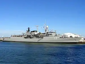 Heroína was scheduled a major engine and structural overhaul in 2006, following her sister ship La Argentina. She is currently homeported at Puerto Belgrano as part of the Navy's 2nd Destroyer Division, along with her three sister ships. In July 2019, the Argentine Navy announced that the vessel was to be scrapped.[2] As of 2021, she was reported to have sat idle for more than a decade and was still awaiting spare parts for repairs that were being held in the United Kingdom due to an apparent dispute with a British company.[3][4]