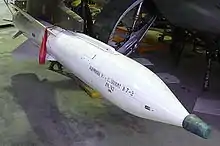 The AS.34 Kormoran (cormorant) is a German-produced anti-ship missile. The Kormoran uses an inertial guidance system for the midcourse phase, switching to active radar homing during the terminal attack phase. It carries a 165 kg (363 lb) delay-fused warhead, designed for 90mm of penetration prior to detonation. The maximum range is 23 km (~14 miles).