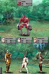 Sakaguchi was attracted to the DS as it felt like a PDA-style device he used to play games during flights between Hawaii and Japan, and he was fascinated by the idea of creating a world conveyed using two screens.[16][1] This wish led to battle information and action being equally divided between the top and bottom screens rather than one being subordinate to the other.[15] He created an early prototype build which proved more successful than he expected.[1] For the gameplay, he wanted to pay homage to early influences on his liking for the genre, including Fire Emblem and Famicom Wars alongside Tactics, but make the gameplay stand out.[15] The gameplay design drew inspiration from the Daisenryaku series.[18] Sakaguchi's wish was to create a hybrid system between tactical RPGs and traditional RPGs.[1] Game balance was an important factor for him, as he wanted the title to be approachable for genre newcomers, leading to some unspecified design changes and a careful incorporation of tutorials to explain its battle system.[15]