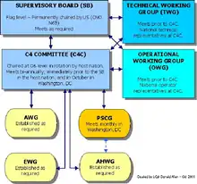 The current AUSCANNZUKUS organization consists of the Supervisory Board, C4 Committee, and various other subordinate groups.[6]