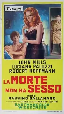 A Black Veil for Lisa (Italian: La morte non ha sesso, lit. "Death has no sex") is an Italian giallo film directed by Massimo Dallamano.[3][4][5] It was shown in Germany as Das Geheimnis der jungen Witwe (translation: Mystery of the Young Widow).[6] It was also released as Showdown.[7]