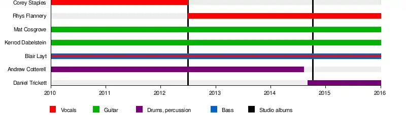 In mid-2013, vocalist Corey Staples was replaced by Rhys Flannery.[5]
