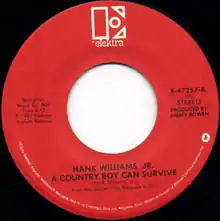 "A Country Boy Can Survive" is a song written and recorded by American musician Hank Williams Jr. The song was released as a single in January 1982 and reached a peak of number 2 on the Billboard Hot Country Singles chart in March 1982.[1] It is considered one of Williams's signature songs even though it never reached number one.