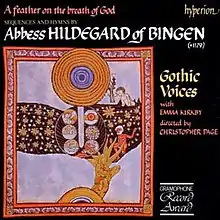 A Feather on the Breath of God is an album of sacred vocal music written in the 12th century by the German abbess Hildegard of Bingen, and recorded by British vocal ensemble Gothic Voices with English soprano Emma Kirkby. It was released by the Hyperion Records label in April 1985.[2]