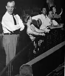 Sondheim later expressed his view of de Mille's directing, calling her "a horror. She treated the actors and singers like dirt and treated the dancers like gods ...[she was,] I think, an extremely insensitive woman, an excellent writer, and a terrible director, in terms of morale, anyway. That was my first experience of bad behavior in the theatre."[12] However, Rufus Smith, who played the minor role of the football coach, stated, "Never again in my life will I experience what it is like to stop a show cold, by doing exactly what she taught me".[13] The immense job of directing the play finally proved too big for de Mille, who stated "I can't do the new dances and the new songs and the new book," and Hammerstein stepped in to direct the dialogue.[7] According to Rodgers biographer Meryle Secrest, at this point the cast was up in arms over de Mille's treatment of them.[14] James Mitchell, one of the dancers in the production, later stated that de Mille was better at directing dancers than actors, as actors come to the stage with preconceived notions about how to play a part, and dancers do not.[13]