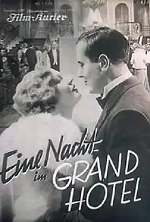 A Night at the Grand Hotel (German: Eine Nacht im Grandhotel) is a 1931 German drama film directed by Max Neufeld and starring Mártha Eggerth, Ulrich Bettac, and Kurt Gerron.[1]