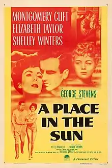 A Place in the Sun is a 1951 American drama film based on the 1925 novel An American Tragedy by Theodore Dreiser and the 1926 play, also titled An American Tragedy. It tells the story of a working-class young man who is entangled with two women: one who works in his wealthy uncle's factory, and the other a beautiful socialite. Another adaptation of the novel had been filmed once before, as An American Tragedy, in 1931. All these works were inspired by the real-life murder of Grace Brown by Chester Gillette in 1906, which resulted in Gillette's conviction and execution by electric chair in 1908.[1]