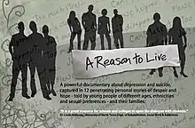 A Reason to Live is a 2009 documentary film about teen and young adult depression and suicide. It captures twelve personal stories of despair and hope, told by young people of different ages, ethnicities and sexual orientations, and their families. It was produced and directed by Allen Mondell and Cynthia Salzman Mondell[1][2] of Media Projects, Inc.