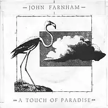 "A Touch of Paradise" is a song written by Ross Wilson, Gulliver Smith and Roger McLachlan. The song was originally recorded by Mondo Rock on their album Nuovo Mondo (1982). The song was covered by Australian singer John Farnham and American singer Kevin Paige. The song was released as the third single from his album Whispering Jack (1986). Whilst many believe that no music video was ever made for this song, while it was rarely seen one was made for its single release in late 1986.[1]