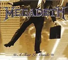 "A Tout le Monde" is a song by American heavy metal band Megadeth, featured on their 1994 studio album Youthanasia. It was released as a single in February 1995 through Capitol Records. The song was later remade and reissued as "À Tout le Monde (Set Me Free)", featuring Cristina Scabbia of Lacuna Coil, on Megadeth's 2007 studio album United Abominations. The song's chorus, "à tout le monde, à tous mes amis, je vous aime, je dois partir", translated into English is, "to the whole world, to all my friends, I love you, I have to go", which prompted controversy after accusations that it was pro-suicide.