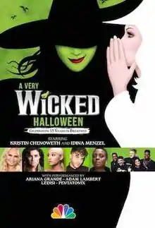 A Very Wicked Halloween: Celebrating 15 Years on Broadway is a Halloween television special commemorating fifteen years since the premiere of the musical Wicked on Broadway. The concert special aired on NBC on October 29, 2018, and was hosted by Kristin Chenoweth and Idina Menzel, and featured performances by Ariana Grande, Adam Lambert, Ledisi and Pentatonix.[1][2]