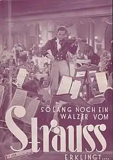A Waltz by Strauss or As Long as Strauss Waltzes are Heard (German: So lang' noch ein Walzer vom Strauß erklingt) is a 1931 German historical musical film directed by Conrad Wiene and starring Hans Junkermann, Gustav Fröhlich and Julia Serda.[1] In the United Kingdom it was released as Johann Strauss.