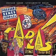 A padlás (Hungarian: [ɒ ˈpɒdlaːʃ]; English: The Attic) is a Hungarian musical with music by Gábor Presser and lyrics by Dusán Sztevanovity. The musical also contains additional text by Péter Horváth. It premiered in the Comedy Theatre, Budapest on 29 January 1988, directed by László Marton. In addition to its continuing successful performance there, it has also been performed in several other Hungarian theatres, as well as in other countries. The musical tells the story of a burglary, of two young people in love, and of four ghosts looking for the other world.