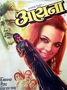 Aaina (transl. Mirror) is a 1977 Indian Hindi-language drama film written and directed by K. Balachander. A remake of the Tamil film Arangetram (1973), it stars Mumtaz in the lead role and A. K. Hangal, Nirupa Roy, Lalita Pawar, Jayasudha and Madan Puri in supporting roles. This film has a special appearance by Rajesh Khanna. The film is about a Brahmin girl becoming a sex worker to support her mother and siblings. After this film, Mumtaz did not feature in any films for thirteen years, until she made a comeback with Aandhiyan (1990).