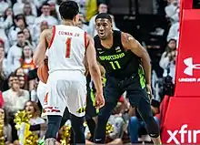 As a freshman Henry played in all 39 of Michigan State's games, starting 22 of the final 23 contests and averaging 6.1 points and 3.8 rebounds per game.[5] He averaged 9 points and 5.6 rebounds during postseason play as whole and 10.4 points and 5.2 rebounds in the NCAA Tournament.[6][7] Henry scored a season high 20 points to go with eight rebounds and six assists against LSU in the Sweet Sixteen of the 2019 NCAA Tournament.[8]