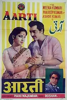 Aarti (Hindi: आरती) is a 1962 Indian Bollywood film directed by Phani Majumdar and produced by Tarachand Barjatya. The film stars Meena Kumari in the title role of Aarti, with Ashok Kumar, Pradeep Kumar and Shashikala appearing in pivotal roles. The film is based on Sanskar Lakshmi, a play written by Prafulla Desai.[2]