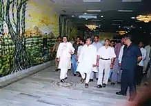 The largest indoor mural measures 904 m2 (9,731 ft²) & was painted by six artists from 27 February to 5 March 2005 at Shyam Vatika, Gwalior, India.[2] The painting was coordinated by Panigrahi and the owners of Shyam Vatika: R P Maheshwary and Ankur Maheshwary, with the sole purpose of setting a World Record. The art features on all interior walls and ceilings of the privately owned Auditorium Shyam Vatika.