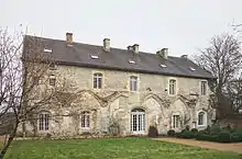 The principal survival is the Church of Sainte-Croix, built in the second half of the 13th century as a chapel for the abbey's novices, which remained in use as a church after the destruction of the rest of the abbey. In the 19th century a new belltower was constructed. The building was damaged in 1940 during fighting between French and German troops in World War II, and traces of this damage are still visible.