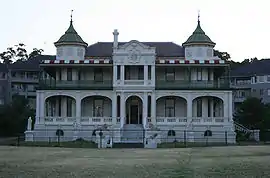 The suburb was originally part of Five Dock Farm and when subdivided in 1837, was called Feltham. Sir Arthur Renwick, a doctor, philanthropist and politician built his home here in 1890 and called it Abbotsford House in honour of Sir Walter Scott's home. Renwick sold his property in 1903 to Albert Grace, and in 1918 it became the site of a Nestlé chocolate factory, with the house used initially for chocolate production and later as their administrative offices. The factory was closed in 1991, after which the area was redeveloped as the medium-density Abbotsford Cove housing complex.[6]