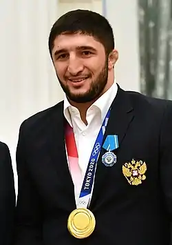 Sadulaev clinched gold at the 2020 Summer Olympics by defeating his rival Snyder in the final. For that achievement, a member of the Russian State Duma rewarded him with a $1 million.[31] Sadulaev once again defeated his rival Snyder to claim gold at the 2021 World Wrestling Championships.