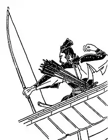 Abe no Munetō (安倍 宗任, 1032 - March 18, 1108) was a samurai of the Abe clan during the Heian period of Japan. He was the son of Abe no Yoritoki, the head of the Abe clan of Emishi who were allowed to rule the six Emishi districts in the Kitakami Basin from Morioka to Hiraizumi in what is now Iwate Prefecture. Abe no Yoritoki was the Chinjufu-shōgun (general in charge of overseeing the Ainu and the defense of the north). In the Zenkunen War, he fought, together with his brother Sadato, alongside his father against the Minamoto.