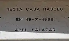 Abel de Lima Salazar (19 July 1889, Guimarães - 29 December 1946, Lisbon), was a Portuguese physician, lecturer, researcher, writer and painter who worked and lived in Porto. He was the son of Adolfo Barroso Pereira Salazar (Guimarães, 20 October 1858 – Porto, 1 January 1941) and wife Adelaide da Luz da Silva e Lima (– Porto, 3 October 1929).