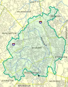 The Aberjona River is a 9.3-mile-long (15.0 km),[1] heavily urbanized river in the northwestern suburbs of Boston, Massachusetts. The name is from the Natick language and means "junction or confluence".[2]