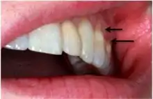 Abfraction is a form of non-carious tooth tissue loss that occurs along the gingival margin.[2] In other words, abfraction is a mechanical loss of tooth structure that is not caused by tooth decay, located along the gum line. There is theoretical evidence to support the concept of abfraction, but little experimental evidence exists.[3]