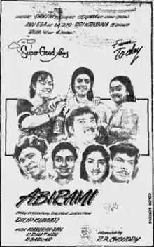 Abhirami is a 1992 Indian Tamil language drama film, directed by Dilip Kumar, making his directorial debut. The film stars Saravanan, Sujatha and Kasthuri, with an ensemble supporting cast including Anju, Vinodhini, Rohini, Goundamani and Senthil. The film, produced by R. B. Choudary, had musical score by debutant Mano Ranjan and was released on 27 November 1992.[1]