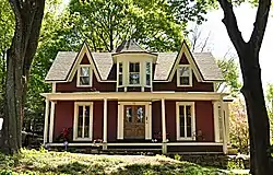The Abijah Thompson House is a historic house in Winchester, Massachusetts. The 1.5-story wood-frame house was built sometime between 1835 and 1850, and is a fine local example of Gothic Revival style. Its first documented owner, Abijah Thompson, was the first president of the Winchester Historical Society. The house bears resemblance to other Gothic Revival cottages in Wellesley and Newton, particularly because of the central polygonal bay, which is flanked by steeply pitched gables. It is also somewhat similar to the Moore House at 85 Walnut Street.[2]