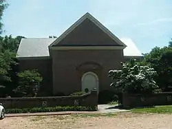 Though many Gloucester County records burned in either 1820 or 1865, a contract to expand the Abingdon church was discussed in 1751, and the current one-story brick church was probably finished in 1754 or 1755. The church has a Latin cross plan with gable roof, pedimented gable ends and modillioned cornice. Col. Lewis Burwell donated a communion set made in London in 1702 to the parish, which remains in use today. The church interior features an elaborate reredos. Following the disestablishment of the Episcopal Church in Virginia in 1802, the building fell into disrepair, although Methodists worshipped at Abingdon Church 1818–1822, and an Episcopal congregation was re-formed in 1826 and repaired the church in 1841. Federal troops occupied the church and caused damage, so it was also repaired in 1868, 1897 and 1950.[5]