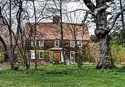 The Abraham Adams House stands in a residential subdivision in the Byfield area of Newbury. It is set on the north side of Pearson Drive, on a 5-acre (2.0 ha) parcel. It is a 2+1⁄2 story wood-frame house, whose main block, its oldest portion, has a gabled roof, central chimney, and clapboarded exterior. Later additions include a two-story ell projecting from the rear of the house, to which is connected a single story modern addition, giving the whole house an "I" shape.[2]