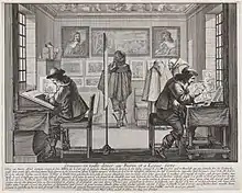 In 1648, Cardinal Mazarin established the Académie Royale de Peinture et de Sculpture. Bosse was made an honorary member in 1651.[4] However his publicising of Desargues' methods embroiled him in a controversy with Charles Le Brun and his followers, who had different methods, and also a belief that "genius" rather than technical method should be the guide in creating artworks. In 1661 Bosse was forced to withdraw from the Academy; he established his own school as an alternative, but it was suppressed by Le Brun.[4]