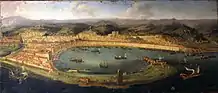 He produced a few etchings of the port of Messina and other marine subjects[2] and Cornelis Bol made a series of etchings after five of his harbour scenes; four are of Italian subjects, but one shows Lambeth Palace in London.[4]