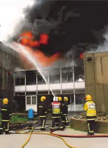 There was no sprinkler system, and some of the fire barriers in the ceilings had been pierced during alterations to the building. The blaze, one of the biggest seen in Manchester since the Second World War was brought under control by 160 firemen using 30 appliances.[14]