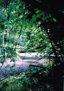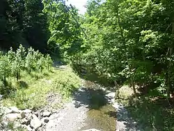![]() Abram Creek on the property of the NASA Glenn Research Center in Brook Park, Ohio. Photo taken from the West Area Road overpass, looking upstream. This location is less than one half mile upstream of the mouth of the creek, where it joins the Rocky River. | |