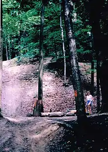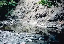 The Abram Creek channel consists of shales and sandstones deposited during the Paleozoic Era, including the Ohio Shale (usually divided into the Chagrin Shale, Huron Shale, and Cleveland Shale), the Bedford Shale, and the Berea sandstone[10][11][12]).