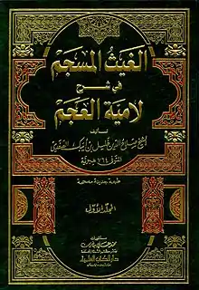 Togharayi wrote a book of poems, the best known of which is Lamiyat al-Ajam (L-Poem of the non-Arabs). Togharayi wrote Lamiyyat al-Ajam as a response to the celebrated pre-Islamic poem Lāmiyyāt al-‘Arab (L-Poem of the Arabs). Lamiyyat al-Ajam was later the subject of an encyclopedic 14th-century commentary by Al-Safadi, entitled Al-Ghayth al-Musajam fi Sharh Lamiyyat-Ajam (Flowing Desert Rains in the Commentary upon the L-Poem of the Non-Arabs).[1]