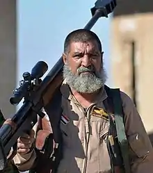 Abu Tahsin al-Salihi; (Arabic: أبو تحسين الصالحي 1 July 1953 – 29 September 2017) was an Iraqi veteran sniper. A volunteer in the Iraqi Popular Mobilization Forces, he is credited with killing over 384 ISIS members during the War in Iraq (2013–2017), receiving the nicknames “The Sheikh of Snipers” and “Hawk Eye.”[1]