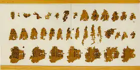 The fragmented papyri are written in columns divided into three horizontal registers.[6][7]