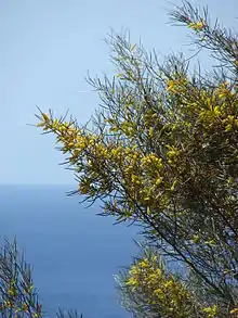 Mulga scrub is distinctive and widespread, with the Mulga Lands of eastern Australia defined as a specific bioregion. The dominant species in these woodlands is mulga, with poplar box (Eucalyptus populnea) forming an increasingly important codominant in the eastern districts.[6][7] The extent of ground cover in mulga woodlands varies with canopy density of the overstorey, becoming almost nonexistent in extremely dense stands. In more open stands, the herbaceous layer consists of wire grasses (Aristida spp.)mulga is long-lived, mulga oats (Monocather sp.), mulga mitchell (Thyridolepis sp.), wanderrie (Eriachne spp.), finger grasses (Digitaria spp.) and love grasses (Eragrostis spp.). Various other woody species are also significant in mulga woodlands, particularly hop bushes (Dodonaea spp.), Eremophila and cassia (Senna spp.).[5][7]