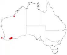 A. bifaria is found among mallee and woodland communities[2] but has a limited range inland along the south coast of Western Australia in the area around Jerramungup and Ravensthorpe. It is often found in clay, rocky loam or sandy soils on undulating plains, low-lying areas and on roadsides.[1]