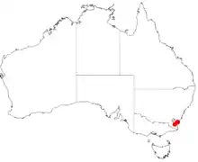 It is native to central parts of New South Wales in the Kydra reefs district to the south west of Cooma mostly in the Deua National Park and Wadbilliga National Park growing in auriferous country.[3] It is usually situated on rocky outcrops or gullies growing in stony sandy soils around granite, rhyolite, metasandstone, slate and quartzite as a part of dry sclerophyll forest and shrubland communities.[2]