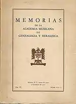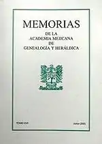 The Academia Mexicana de Genealogía y Heráldica published a series of Memorias through two periods: 8 volumes on the first one (1945–57);[1][21][22][23][24][25][26][27][28] having published 17 volumes from 1957 until 2005.[3][29][30][31][32]