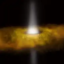 An accretion disk is a structure (often a circumstellar disk) formed by diffuse material in orbital motion around a massive central body. The central body is typically a star. Friction, uneven irradiance, magnetohydrodynamic effects, and other forces induce instabilities causing orbiting material in the disk to spiral inward towards the central body. Gravitational and frictional forces compress and raise the temperature of the material, causing the emission of electromagnetic radiation. The frequency range of that radiation depends on the central object's mass. Accretion disks of young stars and protostars radiate in the infrared; those around neutron stars and black holes in the X-ray part of the spectrum. The study of oscillation modes in accretion disks is referred to as diskoseismology.[1][2]