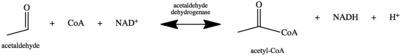 Acetaldehyde + NAD+ + Coenzyme A ↔ Acetyl-CoA + NADH + H+